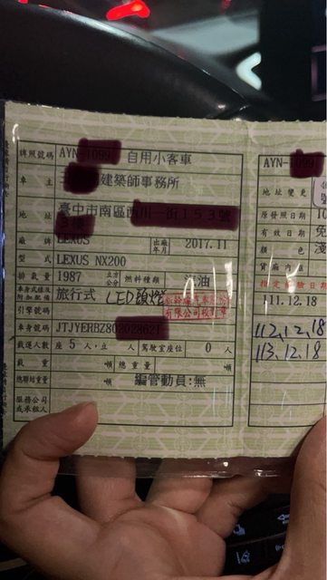 2、車籍於車主所有建築師事務所名下,交易均在事務所內進行,事務所不會搬,有車輛