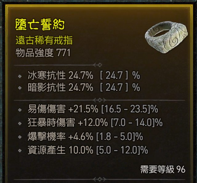 標題[競標] D4 野蠻人96等戒指 易傷/爆擊機率/資源