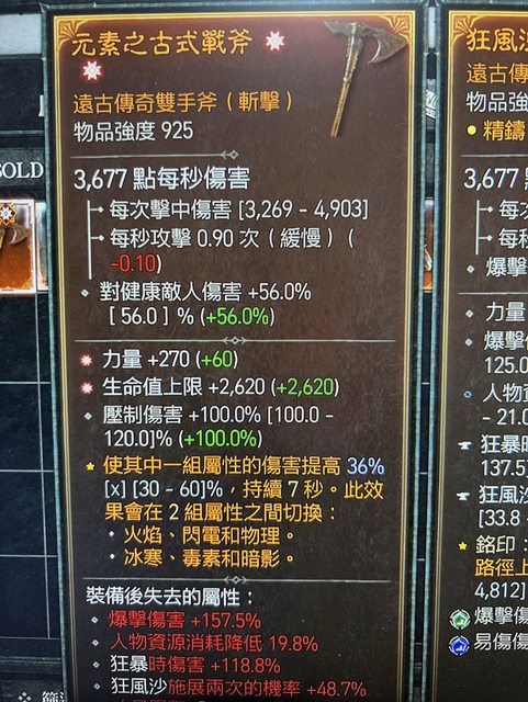 雙太古斧 力量 生命上限 DONE