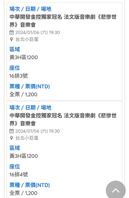 標題[售票] 1/6法文版音樂劇《悲慘世界》 1200元2張
