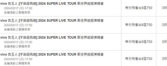標題[售票] 【售】告五人週日750*4