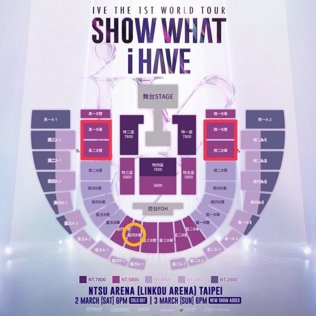 標題[換票] IVE 3/2 5800 藍四B單想換橙或黃