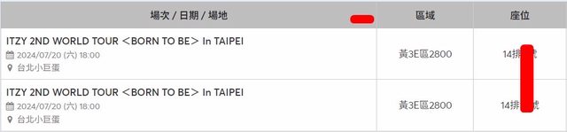 標題[售票] 【售】ITZY黃3E區14排2800*2