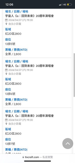 紅2D區$2800 連號4張