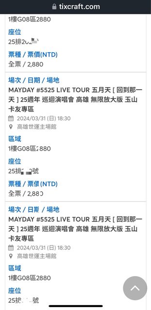 標題[售票] 降售3/31 五月天G08區$2880*3張