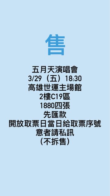 標題[售票] 五月天3/29 C19區1880四張