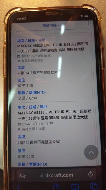 備註:買了4張,朋友無法前往,故售出