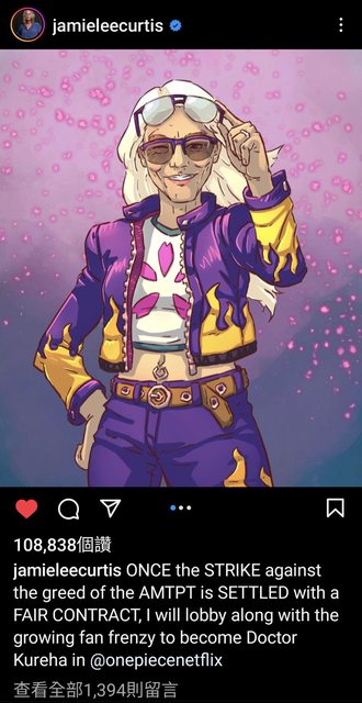 潔米李寇蒂斯今天稍早在IG貼文表示