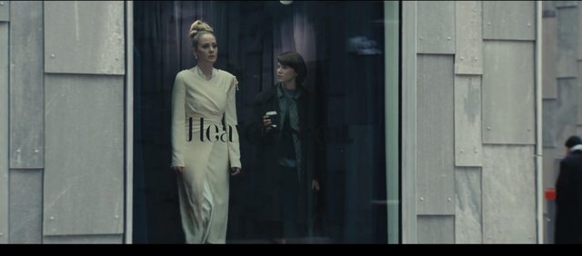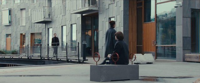 E01 的反烏托邦世界完全不是這個樣,我們眼見建築女主角 Julie一身長衫走在奧斯陸街頭宛如高端社畜般:她有建築學位但沒家世背景沒位給她卡、在大事務所當小妹煮咖啡年復一年從沒有機會、工作數年薪水都繳房租銀行帳戶仍空空如也、年近三十在奧斯陸大都連個窩都找不到何顏返鄉面對父母?這處境和咱當代台北怎這麼似曾相識!眼見本就清冷疏離的奧斯陸在這近未來更加非人了:銀行都用語音系統服務了、要找專人要另花一筆錢、存款不夠貸款直接拒絕沒啥好諮詢、旁邊遛狗的無人機彷彿在笑妳社畜、想在廣場歇腳馬上有人前來要妳買咖啡不買就請妳離開...
