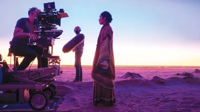 Jess Hong 站在2022年2月在英國謝珀頓工作室(Shepperton Studios)拍攝《3體》中