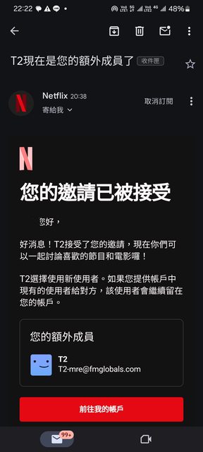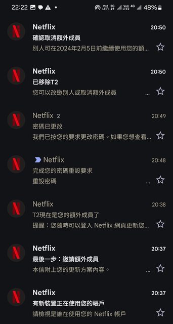 剛剛突然收到Netflix的電子郵件通知,說我邀請了一名額外成員而且對方接受邀請了