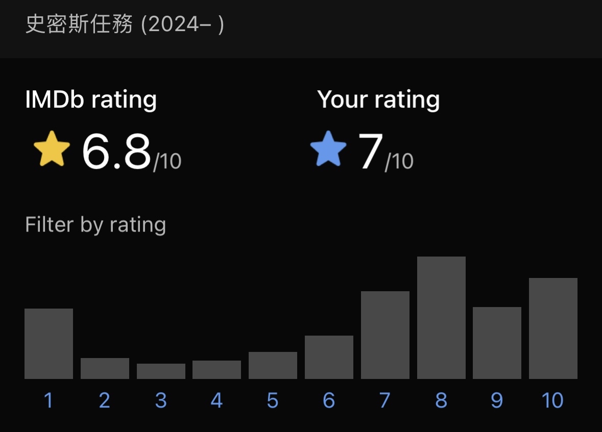 → widec: imdb 6.8是開低走低吧 影集低於7.5基本都難看 02/09 06:01
