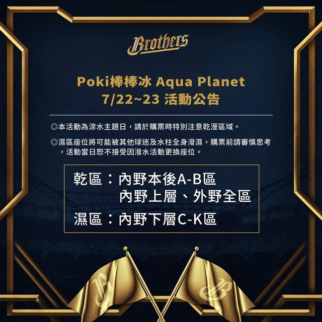 7/22-7/23為涼水主題日Poki棒棒冰 Aqua Planet,內野下層除本後AB區以外皆為潑水區