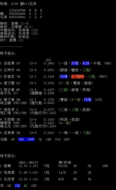 終場,G159 獅0:1兄弟