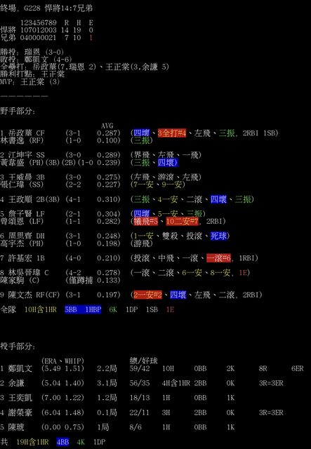 終場,G228 悍將14:7兄弟