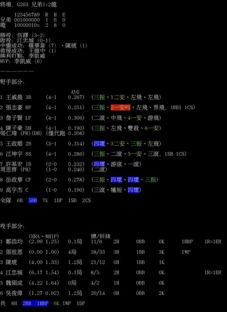 標題[情報] G263 兄弟1:2龍 全場數據box