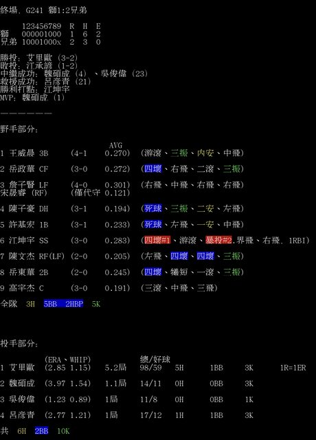 標題[情報] G241 獅1:2兄弟 全場數據box