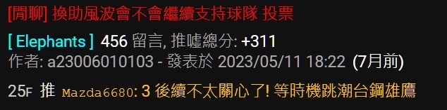 推 zyic: 反正無助一年,接下來能不能進季後賽,看看台鋼味全,還比 12/21 15:32
