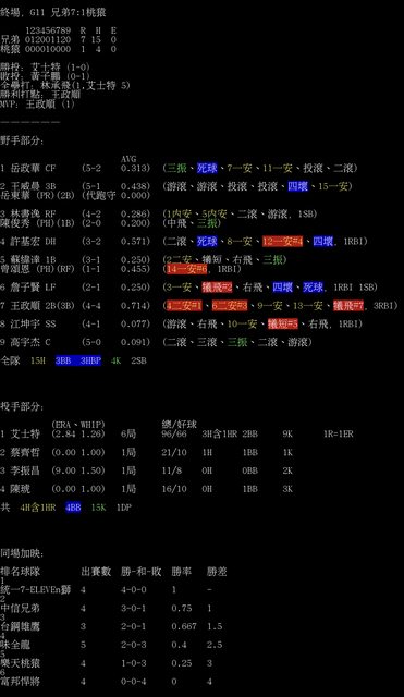 標題[情報] G11 兄弟7:1桃猿 全場數據box