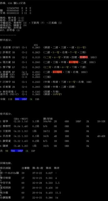 標題[情報] G56 獅5:3兄弟 全場數據box