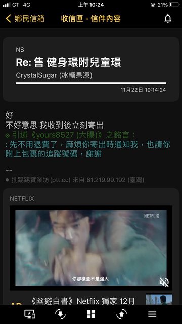 在貴版看到售健身環的訊息隨即與他聯絡