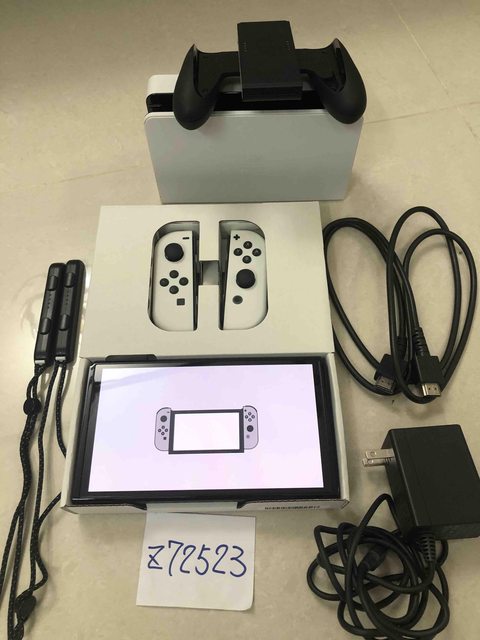 Oled主機營幕、白Joycon、腕帶、手把座、充電底座、充電器、HDMI線