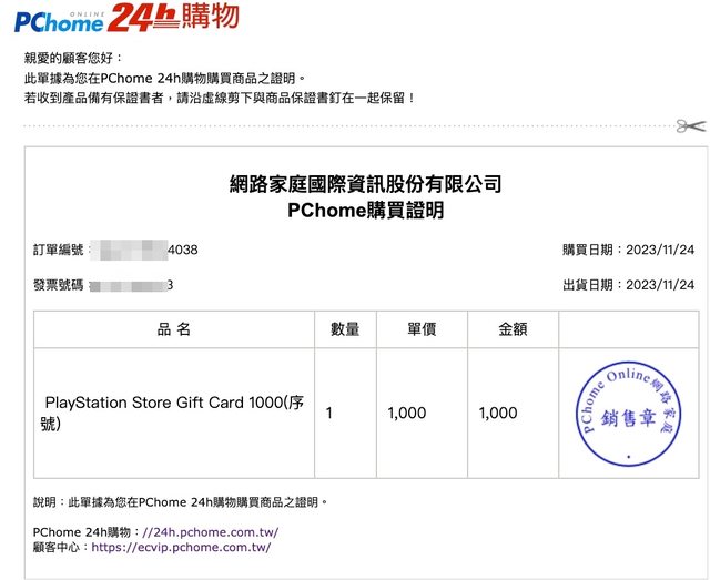 PSN點數1000點 序號 x 4