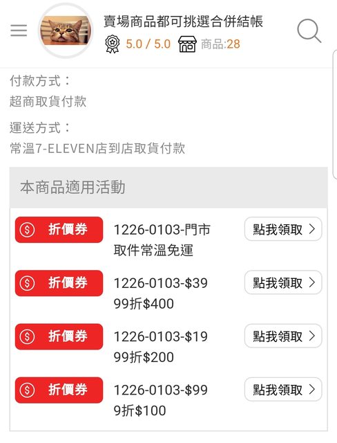 使用7-11 OP會員結帳前領取全站折價券(折價券使用期限12/26至01/03)