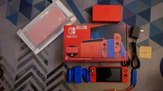 1.Nintendo Switch 瑪利歐亮麗紅 x 亮麗藍 主機組合(電力加強版)