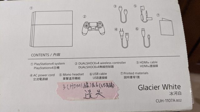 標題[PS4 ] 售 PS4 1107A 500G 白色主機 雙手把