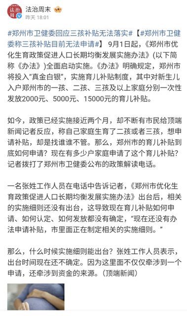 標題[問卦] 鄭州三孩補貼無法落實