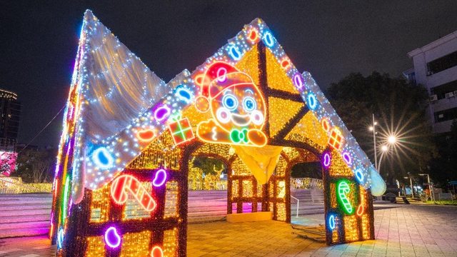 溫馨又夢幻的府中廣場「薑餅樂園 Gingerbread World」燈區。(圖/新北市政府提供)