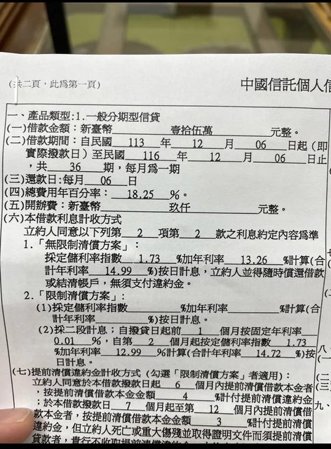 標題Re: [問卦] 經濟出問題的姊姊 借了信貸18%