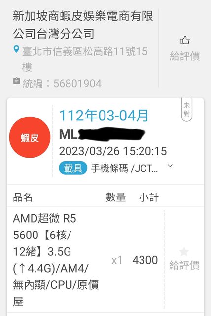 2022/03/11映泰官方蝦皮購入,