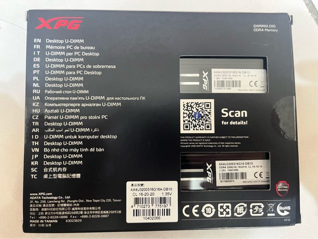 記憶體:XPG D10 DDR4 3200 16G*2
