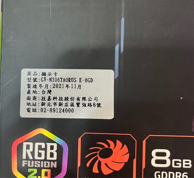顯示卡:保固至2024/11,盒裝完整
