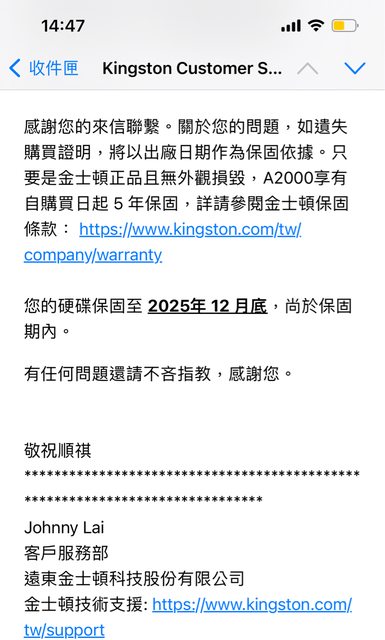 SSD:保固至2025/12