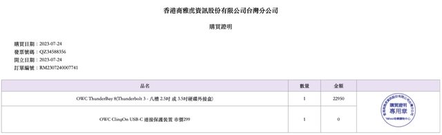 1. 保固至2023年7月24日,盒裝配件齊全,無附SoftRAID XT軟體。