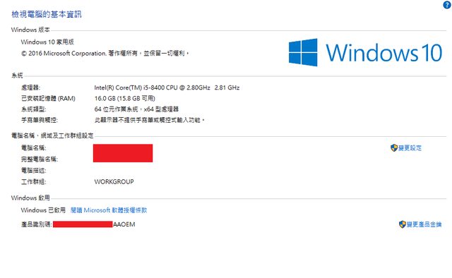Win10家用版已啟用(但無Windows貼紙)