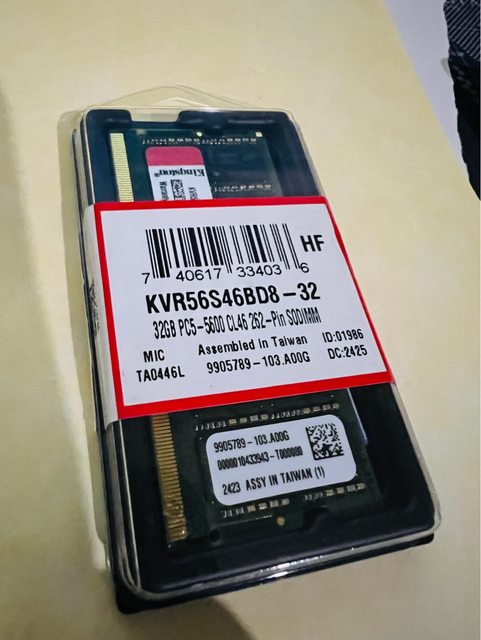 ◎硬體型號: 金士頓 Kingston DDR5 5600 32GB 筆記型記憶體