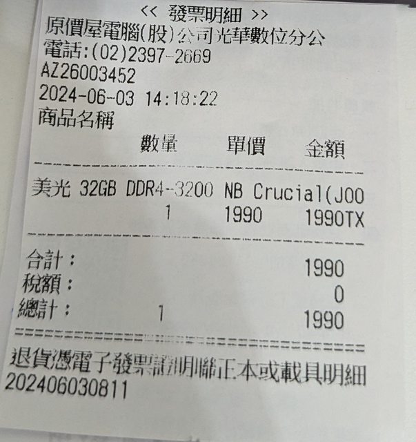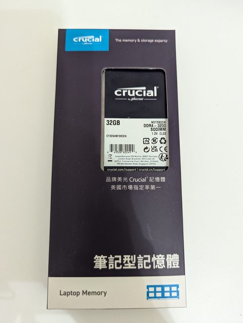 標題[賣/台北/皆可] 美光 NB DDR4-3200 32G 記憶體