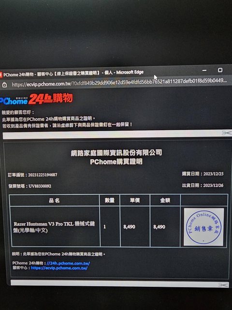 ◎硬體型號: RAZER HUNTSMAN V3 PRO TENKEYLESS