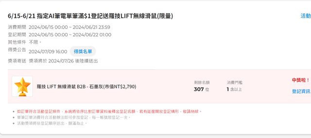 1.2024/7/26寄發之贈品