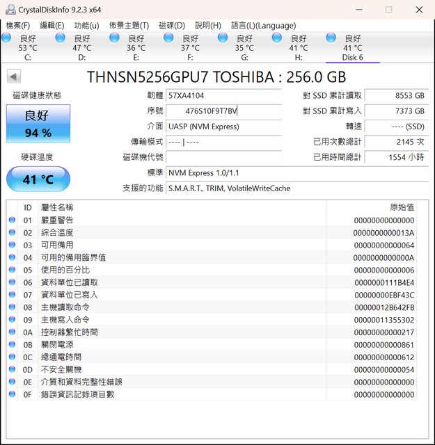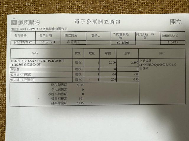◎硬體型號: 東芝 XG3 SSD 256GB M2 PCIE 2個