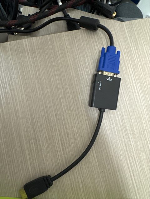 送一個VGA轉HDMI轉接器,接3.5mm線就可以聲音跟影像同時輸出,