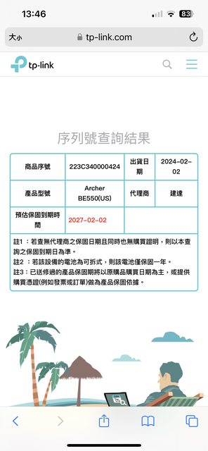 ◎硬體型號: TP-Link Archer BE550