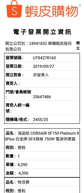 ◎硬體型號:1.海盜船SF750