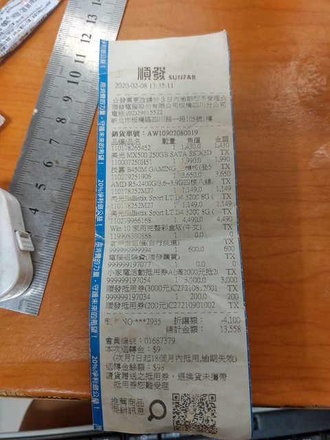 20200208購自順發3C板橋四川,主機板已經過保,記憶體終身保固,均是升級後換下,