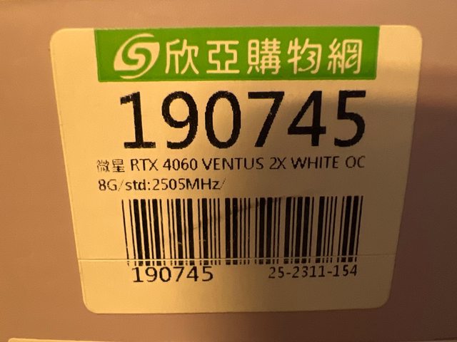 ◎硬體型號: MSI RTX4060 VENTUS 2X 8G OC