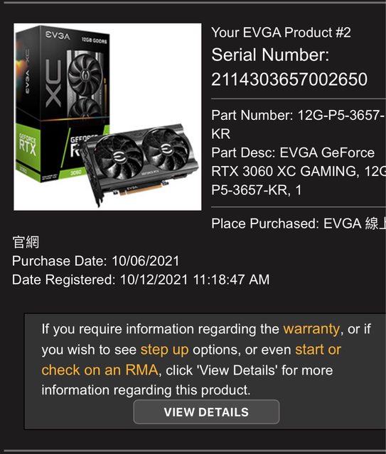 2.112年於板上購入,因遊戲時出現黑屏有RMA過換了一張卡,故序號跟原盒不同,保固經